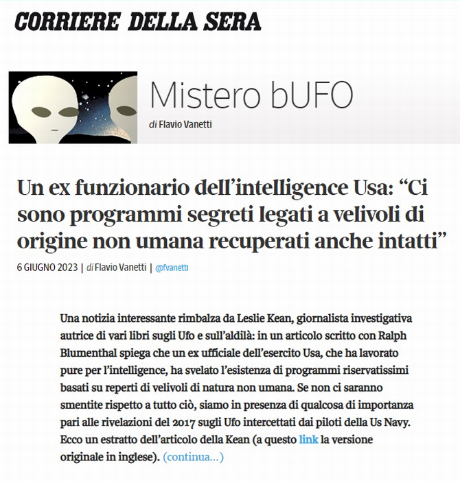 Dal Corriere della sera di oggi, 12/06/2023