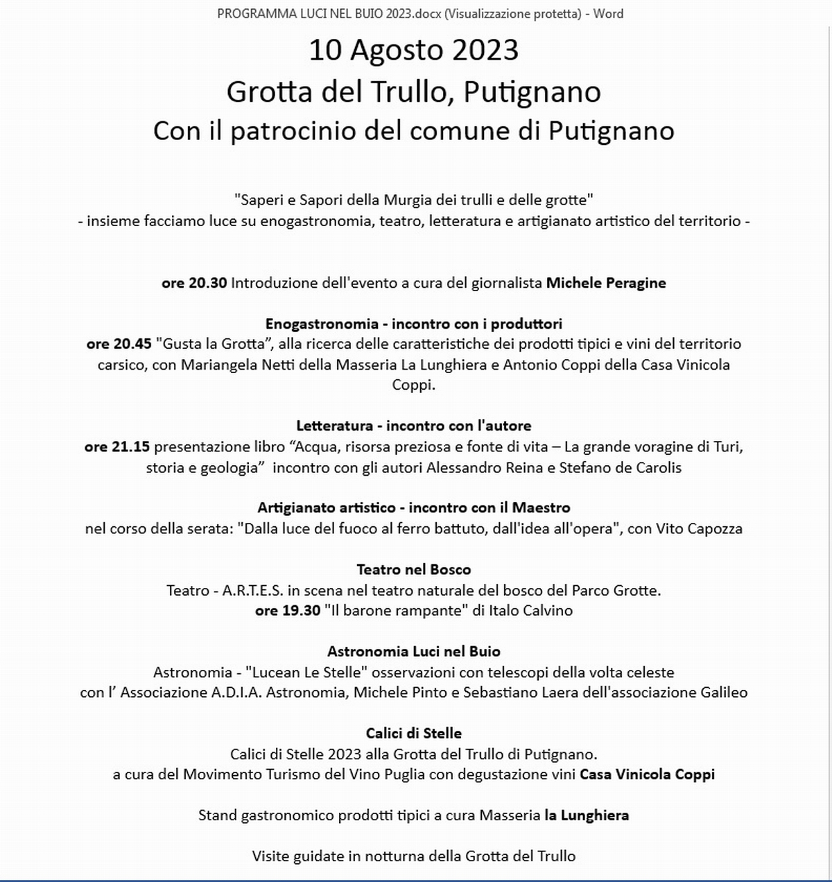 Luci nel buio 2023 - presso Grotta del Trullo - Putignano (Bari) - Locandina