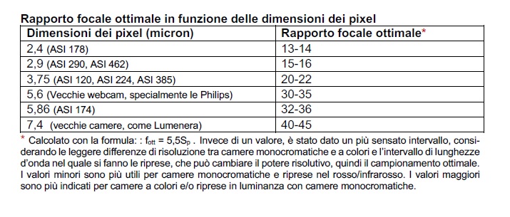 In questo manuale ci sono anche altre formule più o meno complicate ma per farla semplice, se hai un sensore da 2,9 micron dovresti raggiungere un rapporto focale di f16, secondo la tabella.