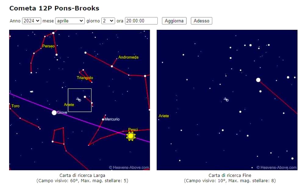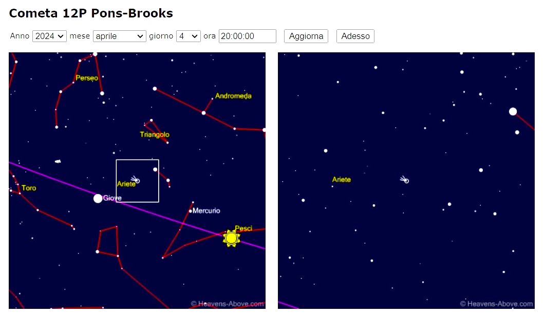 Cometa periodica Pons - Brooks, in questo periodo visibile, bassa, al tramonto