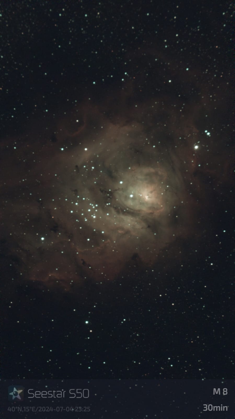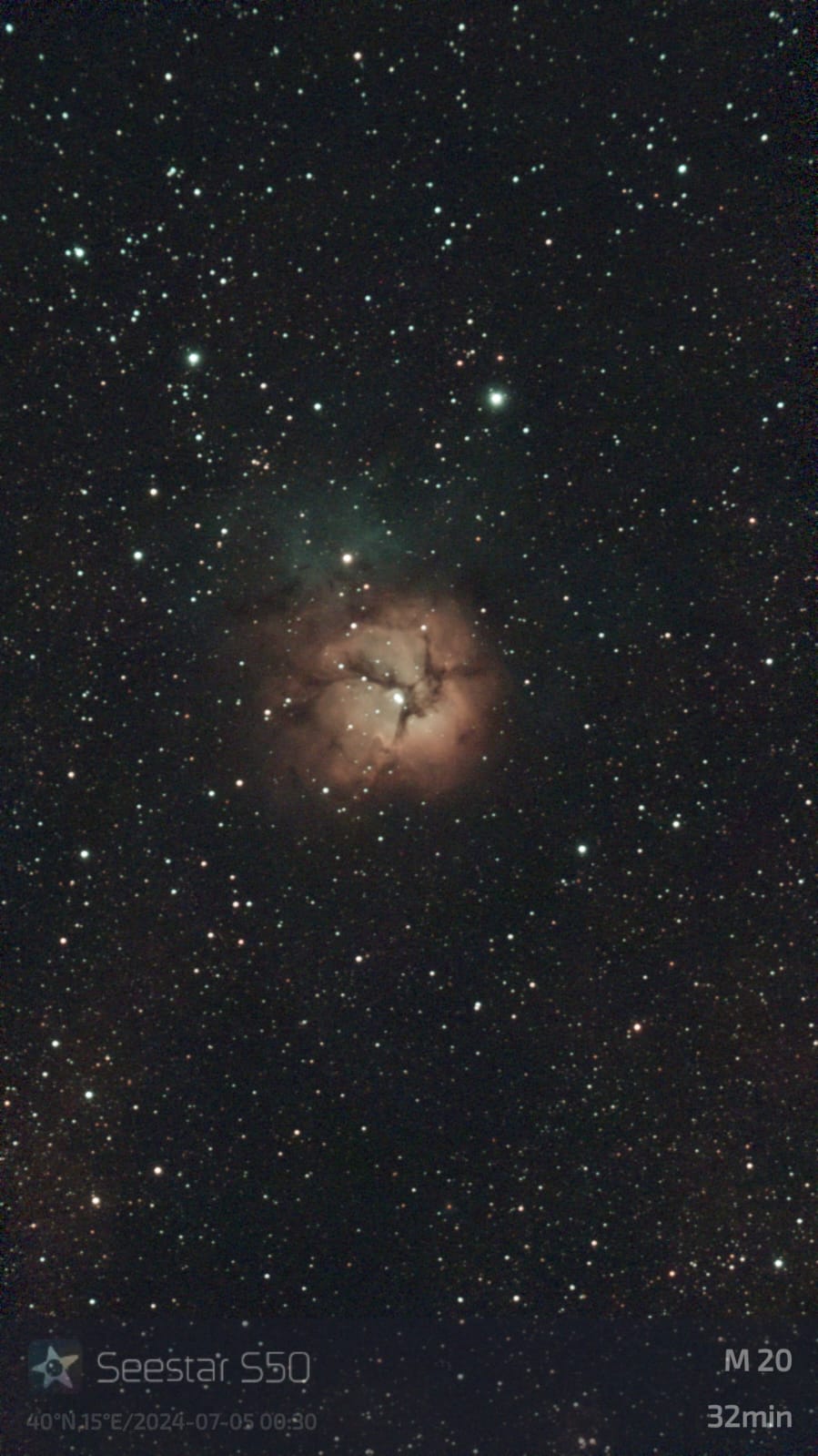 Vi sottopongo due riprese da circa 30 minuti ognuna eseguite con il Seestar sotto un cielo Bortle 5 tendente a Bortle 4. Il cielo è quello di Venosa da un balcone che si affaccia in direzione est-sudest su un vallone dove non ci sono tanti bagliori di paesi vicini e fari di insediamenti industriali. solo una lunga fila di luci rosse intermittenti delle pale eoliche.