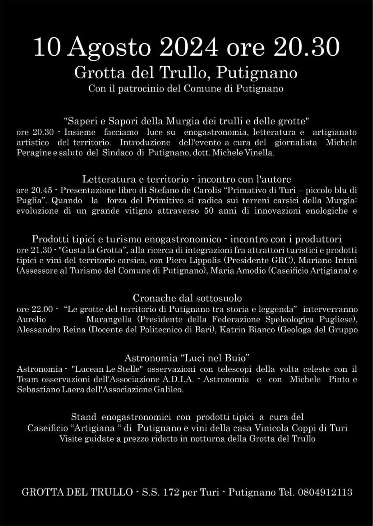 Questo 2024 è il tredicesimo anno che vede l'interessante appuntamento Astro-Gastronomico, sempre presente il 10 agosto @ Putignano.