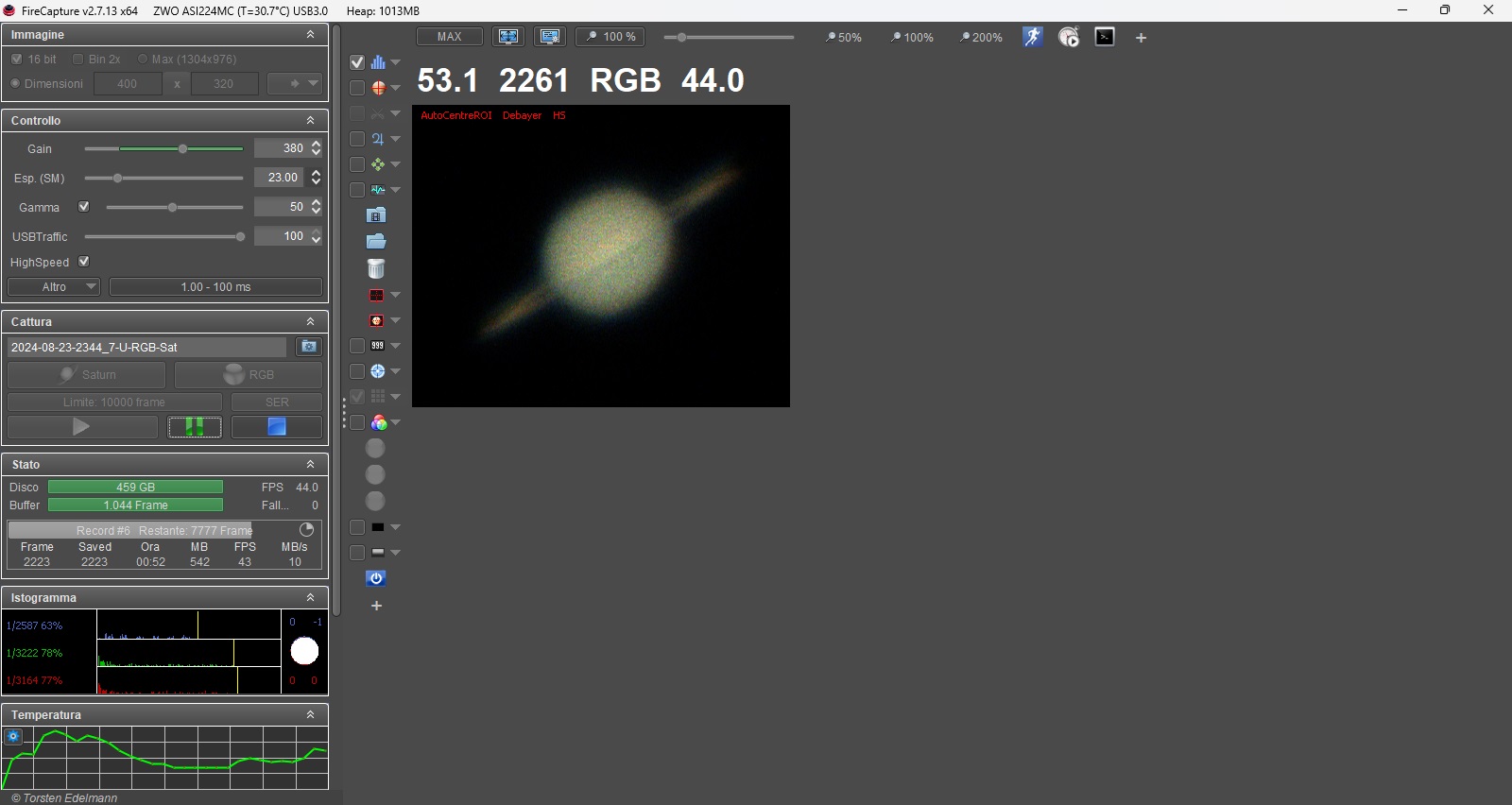 Quando si spostano le levette dei prismi dell'ADC il pianeta si sposta nell'inquadratura e va ricentrato. Mi sono fatto aiutare da un tool di Astrosurface che visualizza i valori da correggere. All'inizio è stata complicata la sua gestione ma con la pazienza e la pratica sono riuscito a domarlo