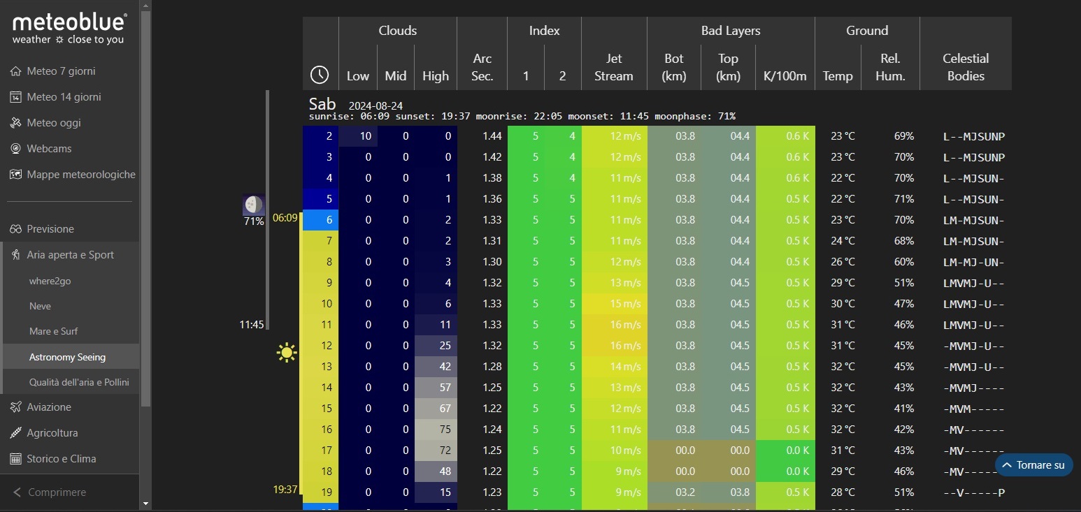 Saturno ha raggiunto come massima altezza alle ore 2:00 circa i 42°.