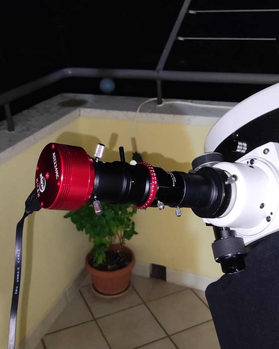 Con l'ADC il rapporto focale aumenta @ f 27, ma il giusto campionamento per la mia camera (ASI224MC) è di f 20. Pertanto ho cercato di ridurre la distanza dal sensore alla barlow eliminando una prolunga preinstallata sulla stessa, raggiungendo così il rapporto focale di f 22,5. Ho comunque sovracampionato ma non eccessivamente. Devo capire meglio come ridurre ancora il treno ottico in modo tale da raggiungere il giusto campionamento, magari inserendo la barlow da 2x anzichè 4x.