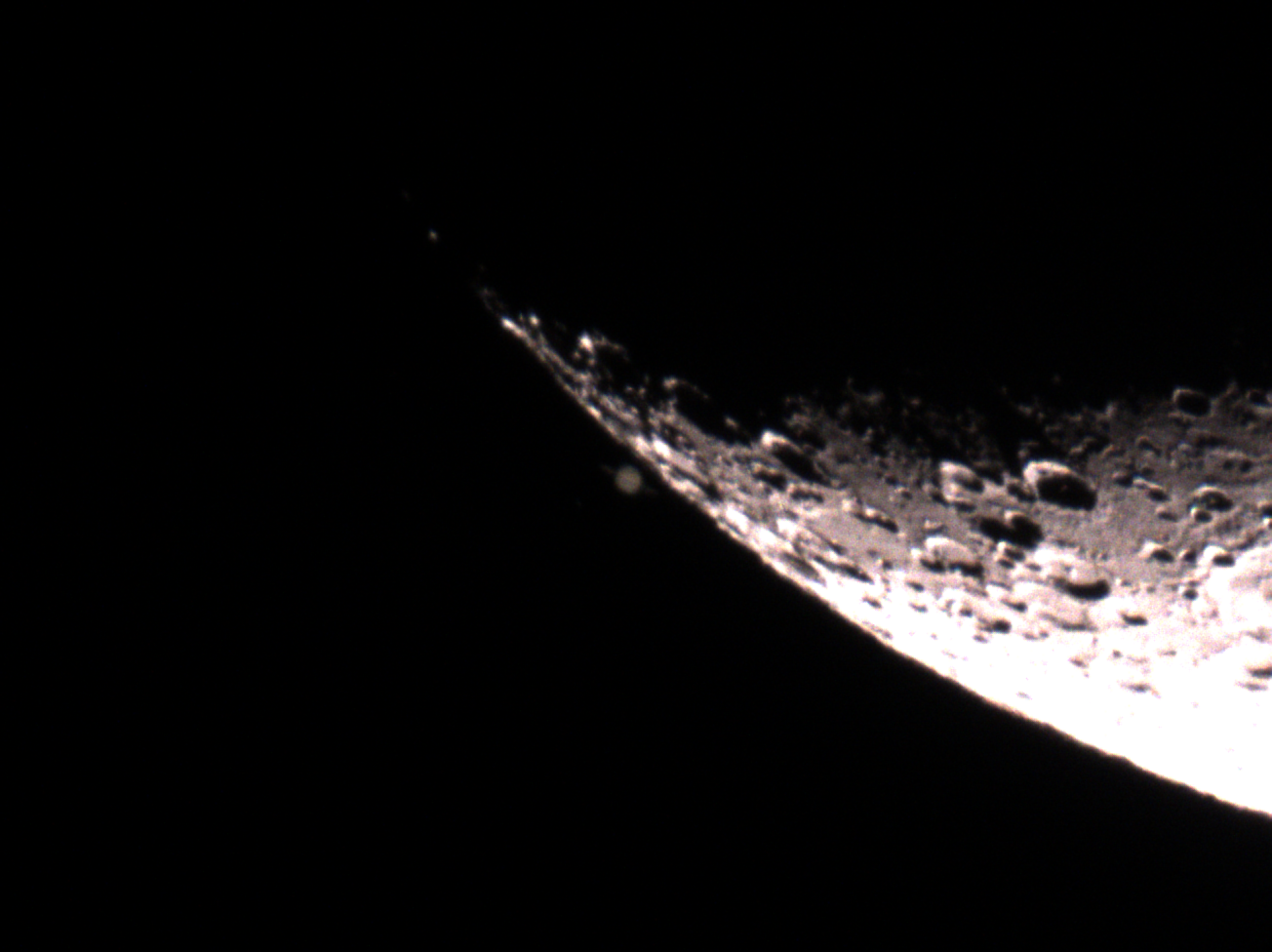 Ottimo Vincenzo!! Anch'io ci ho provato a documentare questa occultazione con un video che, essendo troppo pesante (35 MB) ed essendo in formato mp4 non riesco a condividere qui sul forum. Allego un singolo frame dello stesso. Acquisizione dal balcone di casa a Putignano (BA) con telescopio Celestron Maksutov 127 SLT + camera Zwo Asi 224MC. Acquisizione con Firecapture.