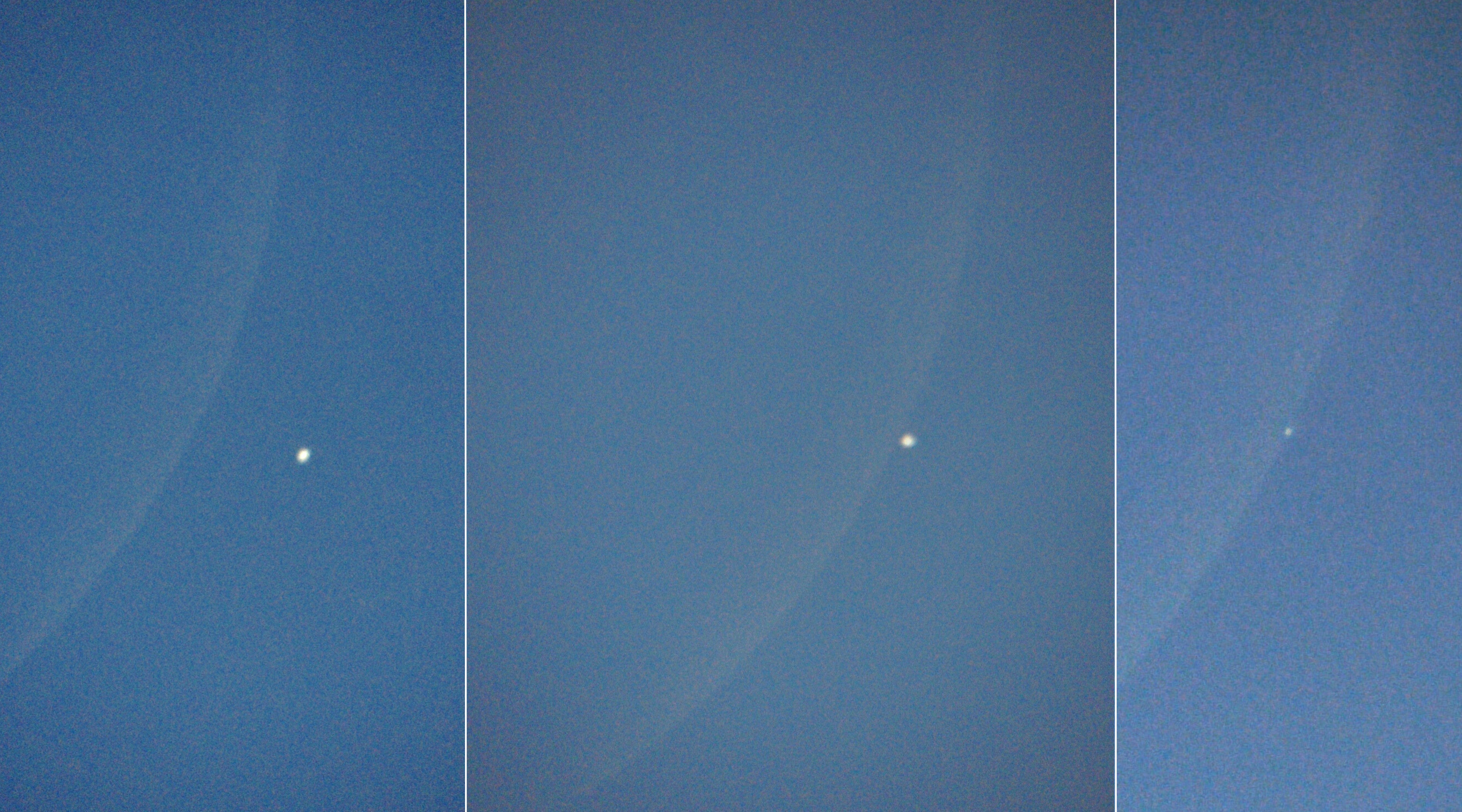 Qui di seguito allego una composizione di tre scatti singoli ottenuti con il dobson da 8 e con 1/10000 di esposizione a ISO 100 ciascuno.