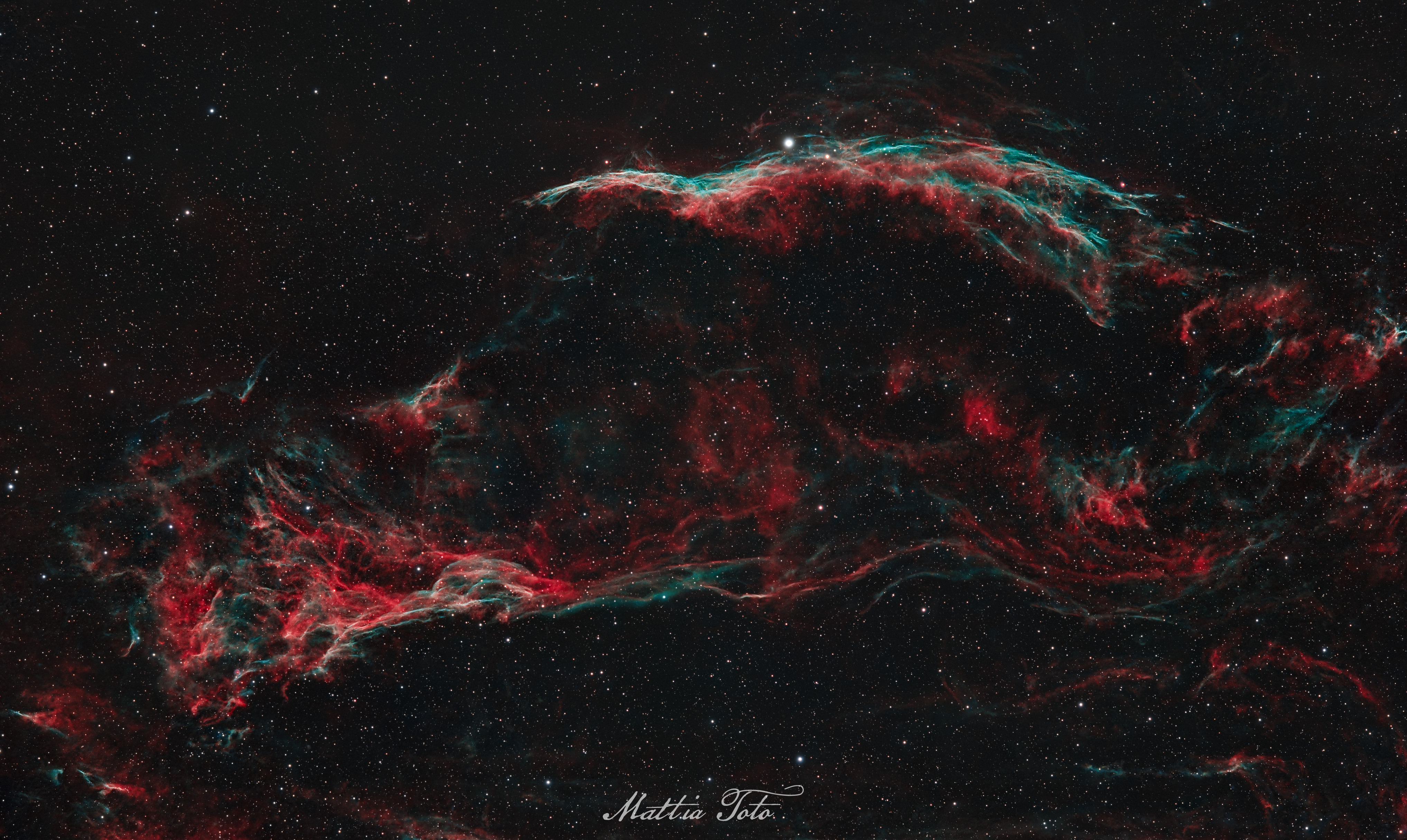 Nella mia immagine si distinguono la Scopa della Strega (NGC 6960), attraversata dalla brillante stella 52 Cygni, e il Triangolo di Pickering (NGC 6979), due delle strutture più spettacolari di questo vasto complesso di gas e polveri ionizzati.