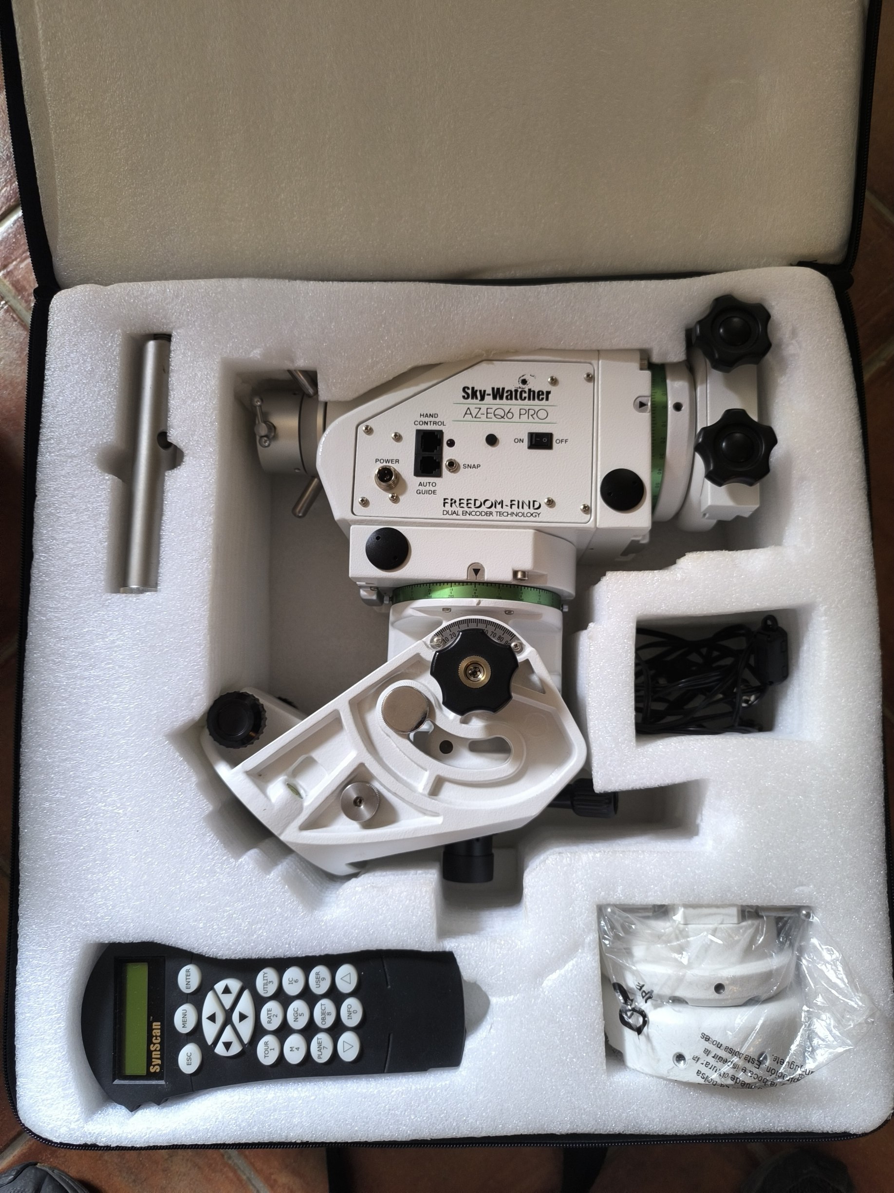 vendo per inutilizzo montatura Az-Eq6 Synscan Pro completa di dotazione standard (treppiede, contrappesi, testa aggiuntiva per configurazione altazimutale, vassoio portaoculari, pulsantiera, cavo di alimentazione con plug accendisigari).