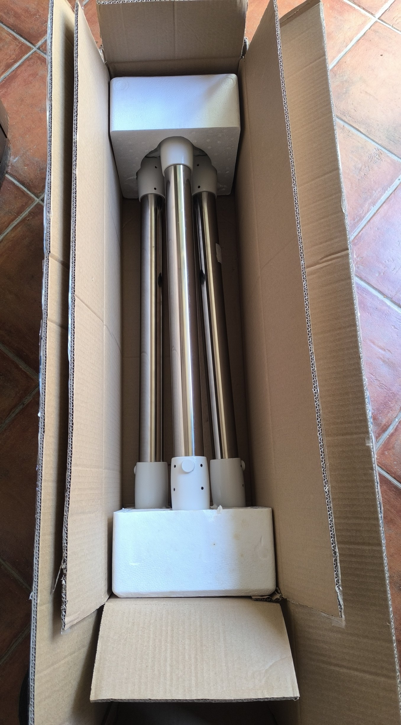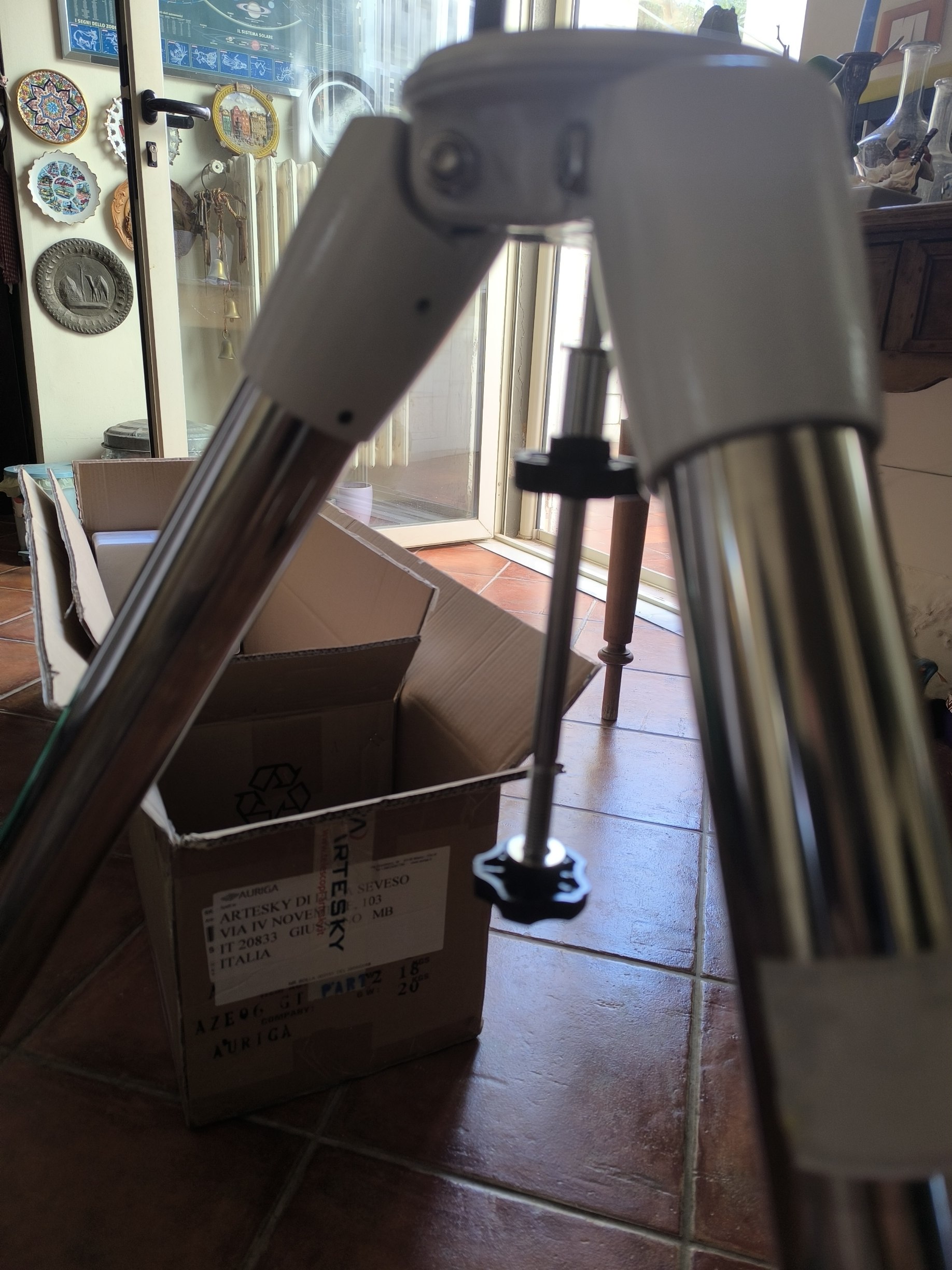 La montatura è in PERFETTE condizioni, ha 5 anni di vita, l'avrò usata 6-7 volte in tutto. Direi "usato in ottimo stato" solo per correttezza estrema, in realtà il tutto è pari al nuovo (lievi segni di usura solo sui piedini del treppiede, per l'attrito col terreno nelle poche volte di utilizzo)