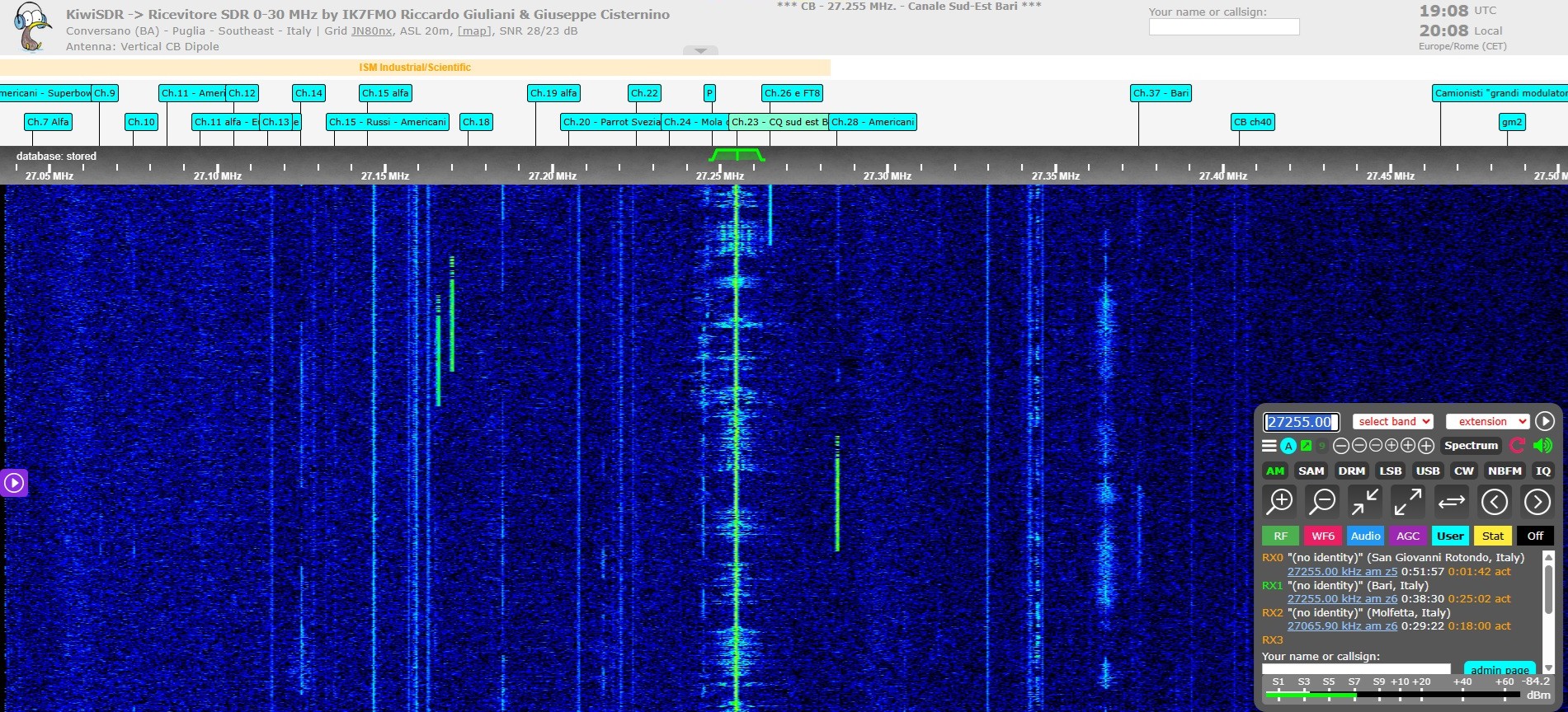KiwiSDR di Conversano (Bari) da noi installato anni or sono, diverse radioboe.