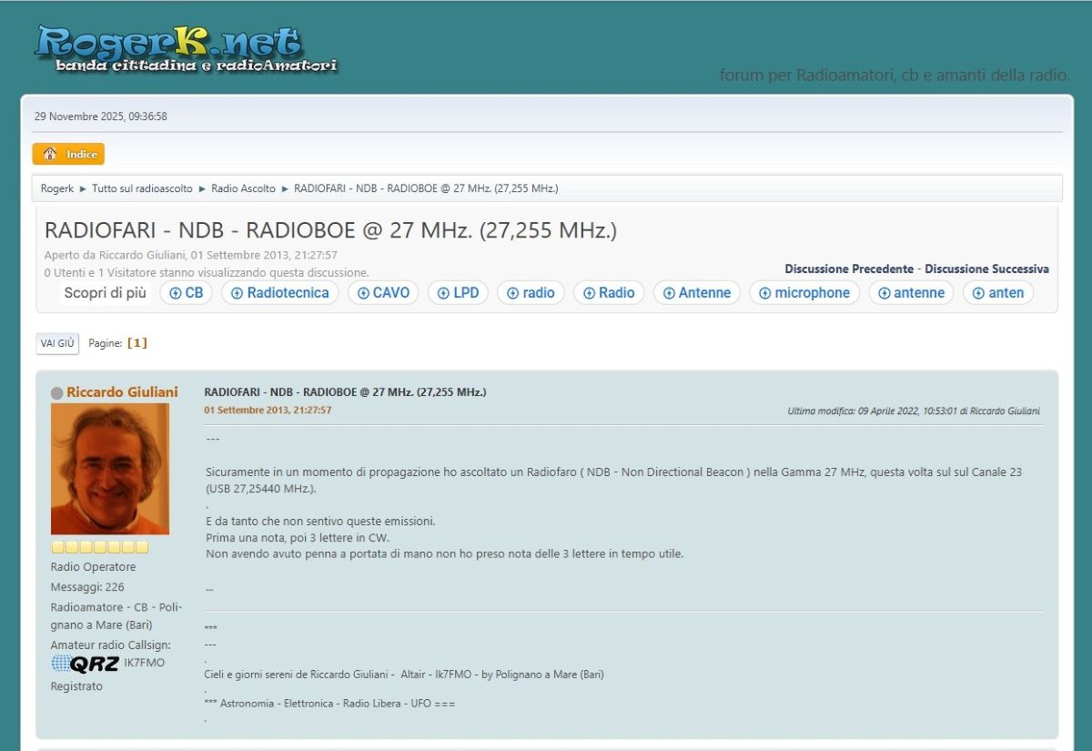 Sul forum, per CB e Radioamatori "Roger K", un antica, intrigante lista, da me aperta nel settembre 2013.