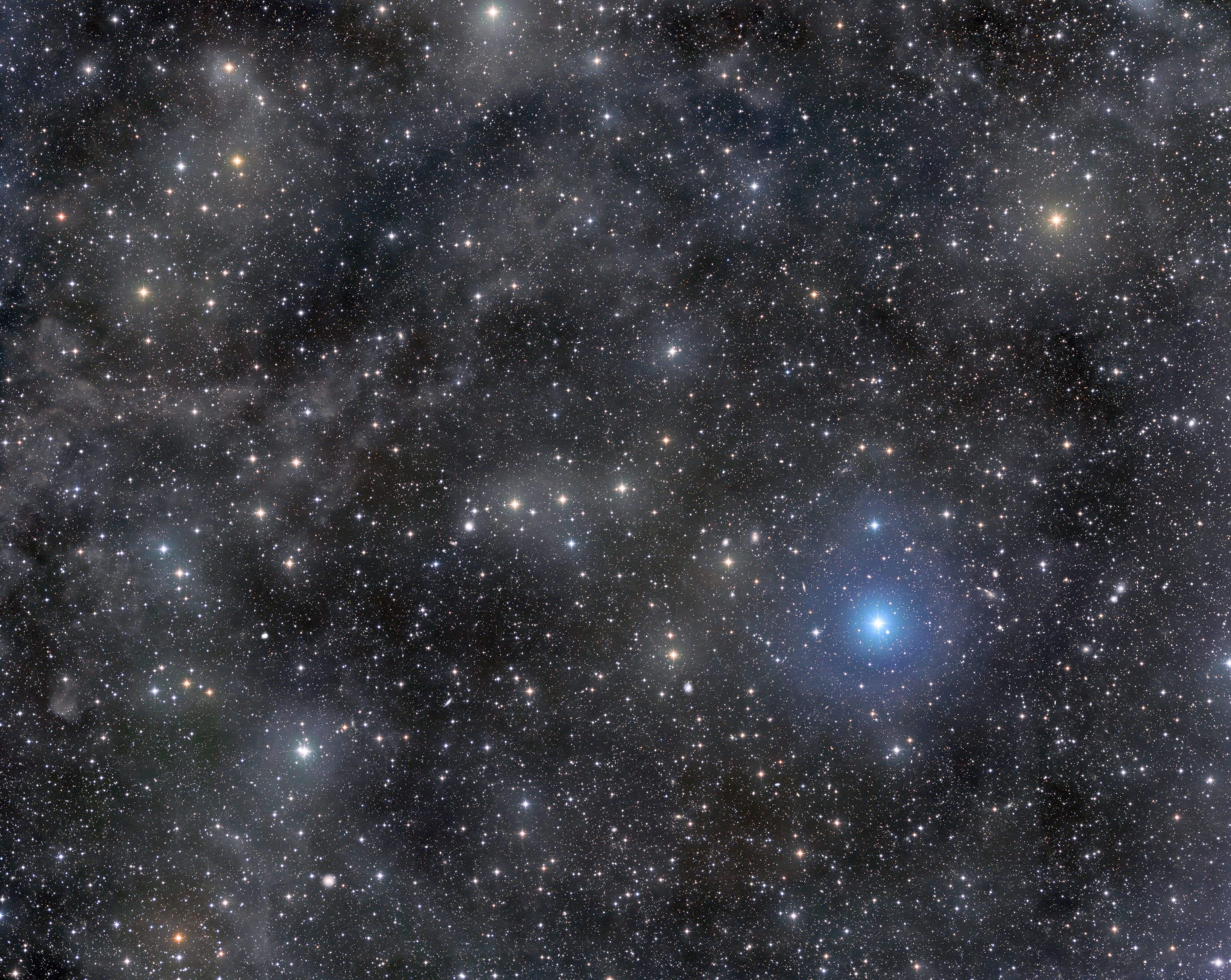 Secondo la mia stima non è una IFN molto brillante e contiene nel campo stelle abbastanza luminose da rendere molto difficile l'elaborazione perchè gli aloni alterano la regolare forma della IFN; l'elaborazione è stata infatti molto lunga.