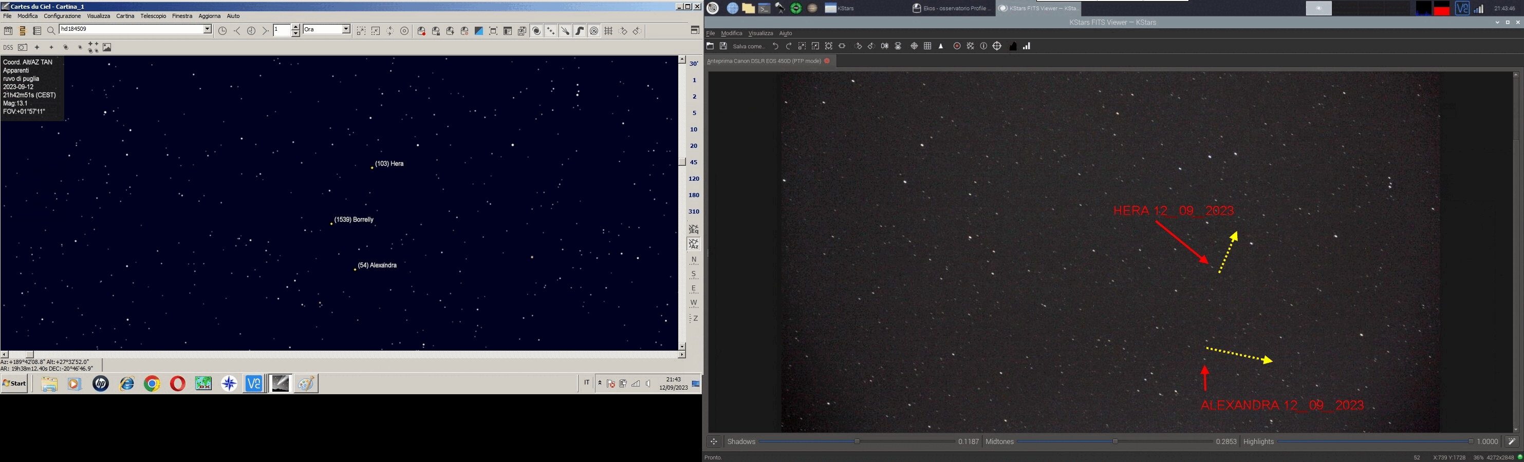 Re: Due asteroidi nello stesso campo: Alexandra ed Hera riprese fatte in tre giorni consecutivi Settembre 2023