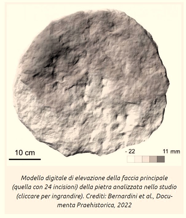 Una pietra circolare di 50 cm di diametro e 30 cm di spessore, trovata nel Castelliere di Rupinpiccolo e risalente a un’epoca compresa fra il 1800 a.C. e il 400 a.C., presenta sulla superficie 29 incisioni sovrapponibili con notevole precisione – tutte tranne una – alle stelle dello Scorpione, di Orione, delle Pleiadi e di Cassiopeia. Ad accorgersene, un astronomo dell’Inaf di Trieste, Paolo Molaro, e un archeologo dell’Università Ca’ Foscari di Venezia e dell’Ictp, Federico Bernardini. da Media INAF