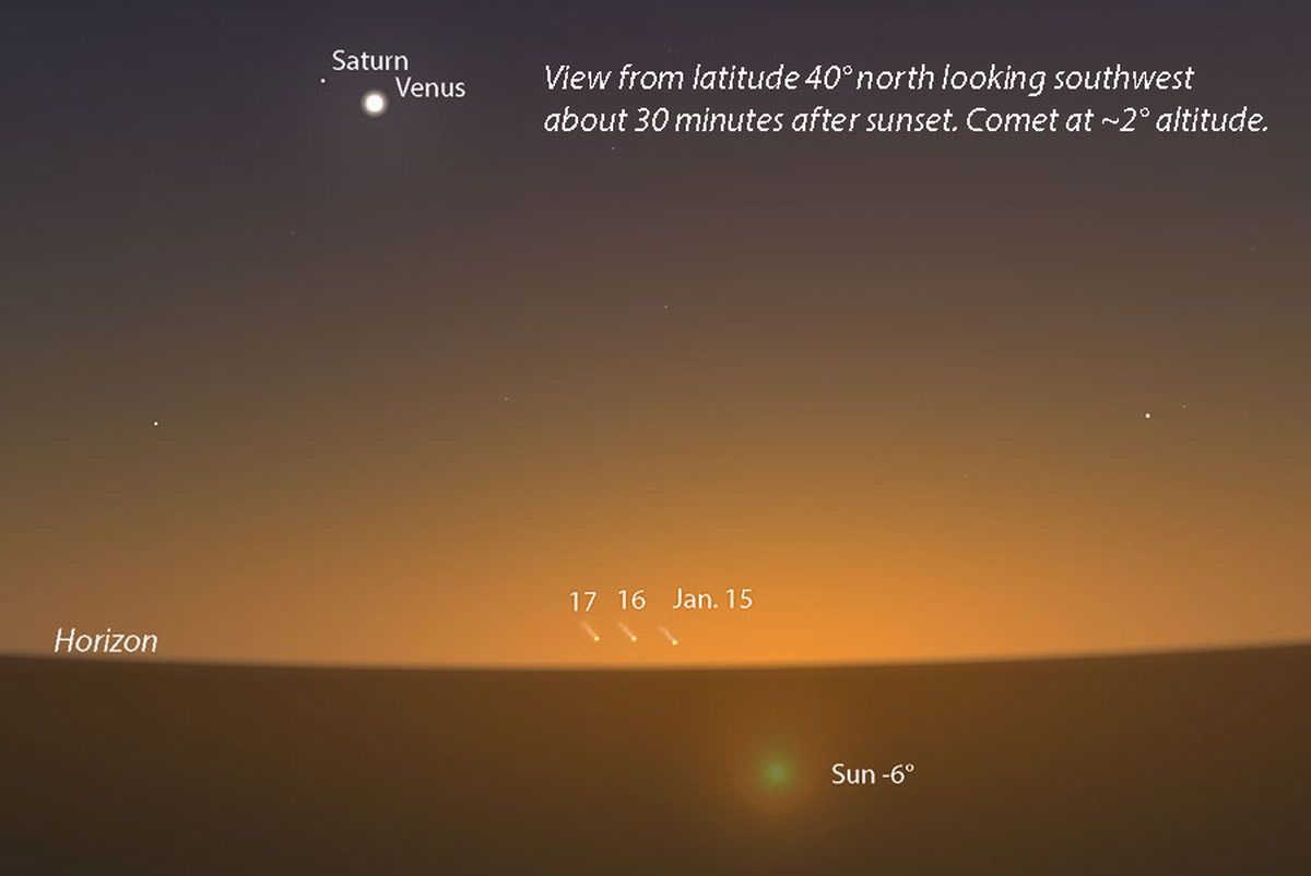 Nei prossimi giorni sarà visibile, al tramonto, bassa sull'orizzonte (Foto 1 - da S&T)