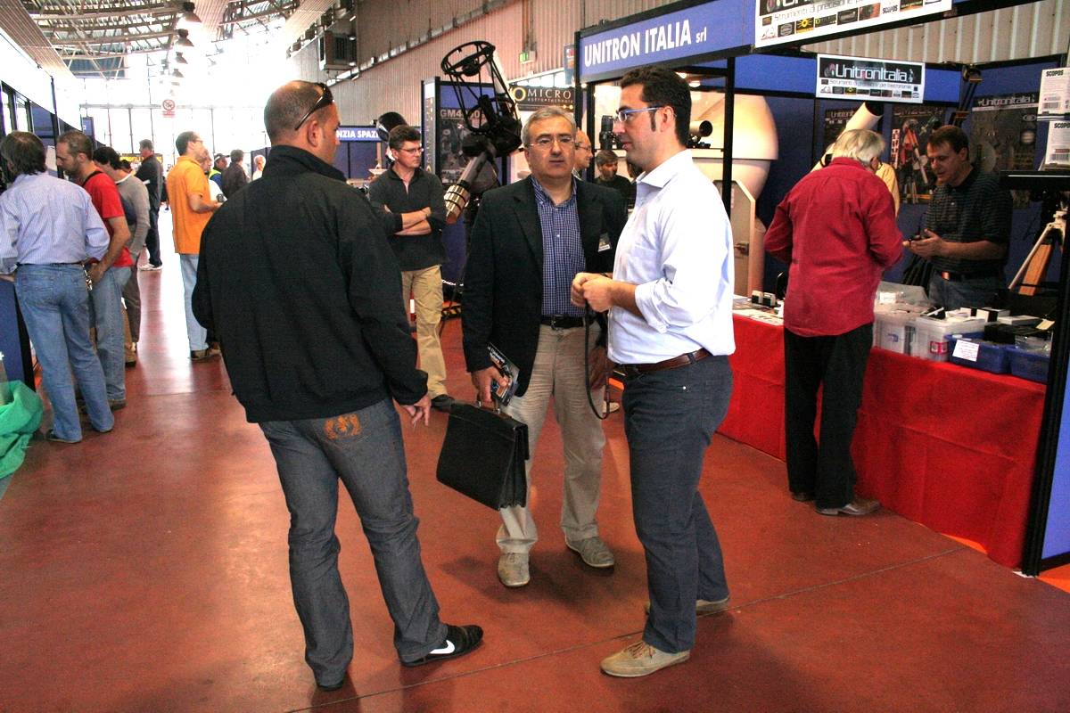 Plinio Camaiti accanto alla consistente 10 Micron (montatura) nello stand di Unitron Italia.